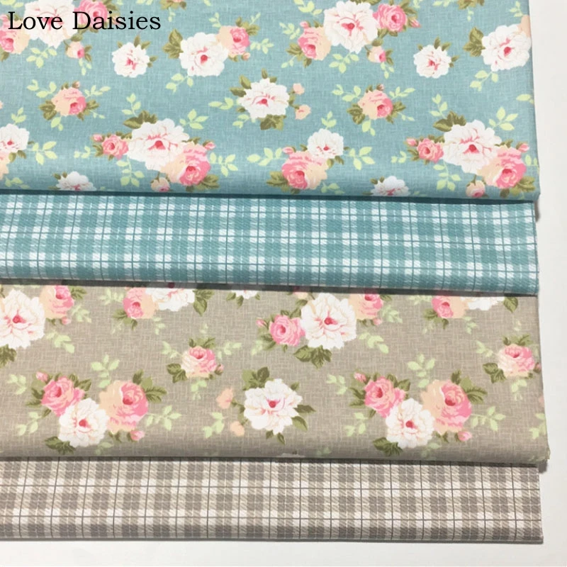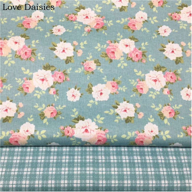 Best Offer for 100% Cotton Retra BLUE CAMEL Pink Rose Flowers Floral Check Twill Fabrics for DIY Bedding Apparel D